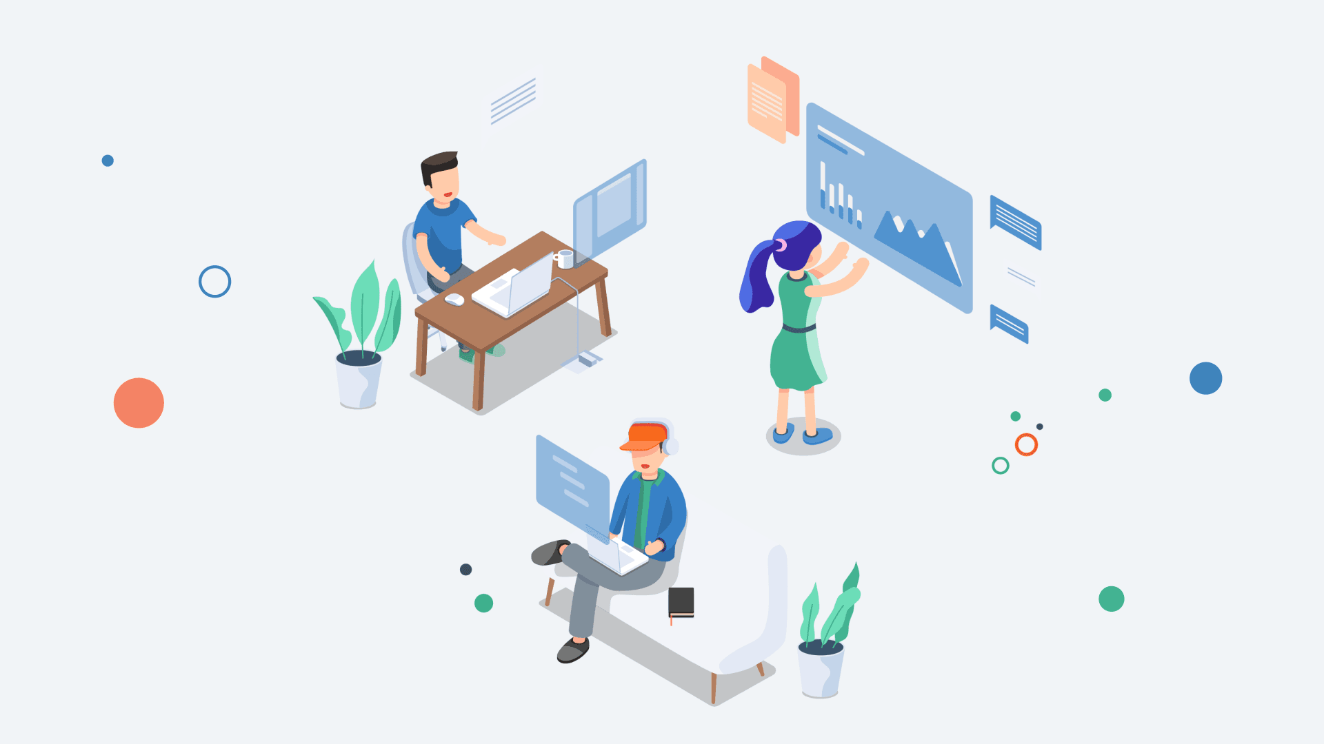 As part of the design, I also got the chance to get creative with some illustration work. I helped to setup an illustration library in Sketch that could quickly and easily be used to create new scenes for marketing purposes. This created a sense of consistency in the design and also enabled new marketing material to be produced quickly and efficiently.